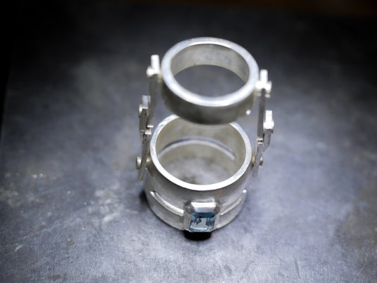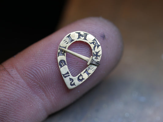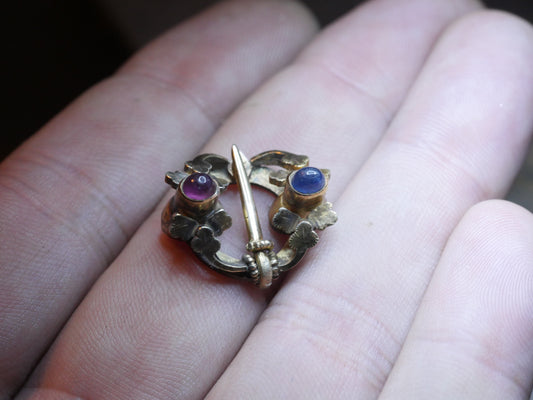 14th century medieval brooch, gold plated silver, garnet and sapphire